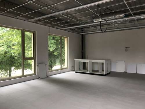 - Potteau is gestart met de plaatsing van het meubilair. Het gaat hier specifiek over het witte laboratoriummeubilair dat je op de foto’s kan zien.